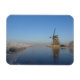 Imã fotográfico retangular com uma paisagem no campo nos Países Baixos no inverno com um moinho de vento, gelo no rio e foscos sob um céu azul claro.