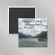 Imã de geladeira quadrada que apresenta uma imagem cênica das belas e lacustres águas azuis de Waterton Lagos, Alberta, Canadá, que faz parte do Parque Internacional da Paz Waterton-Glacier. Faz um viagem de souvenir excelente!