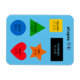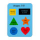 Este ímã com formas populares coloridas como quadrinhos, retângulos, triângulos, estrelas, círculos e coração sobre fundo azul claro personalizado é uma boa escolha para pais, professores ensinarem crianças e estudantes em chinês mandarim.