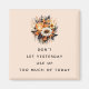 Um ímã com um ditado: "Não deixe que ontem se use muito de hoje". Projetado com um buquê de flores elegante, mas gótico. Compostos por tulipas de laranja, margaridas amarelas, folhas de cinza e alvéolos e alguns acentos de orango.