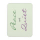 Quer paz e silêncio? Conte a todos com este slogan tranquilo de "paz e sossego" em verde e roxo num fundo verde pálido.