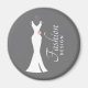 Íman de design de moda feito com um fundo de cinza clássico. Uma ilustração gráfica de um elegante vestido branco pendurado num cabide. Design minimalista simples.