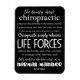 A citação do Dr. B.J. Palmer: "A beleza da quiroprática é o fato de que ela funciona com meios naturais. Não coloca nada de novo no corpo, nem retira qualquer glândula ou órgão natural. A quiroprática simplesmente libera forças de vida dentro do corpo, libera riachos de energia sobre os nervos, e permite que a natureza faça seu trabalho de maneira normal." numa variedade de tipografia/fontes.