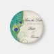 COLOR PALETTE: Azul, preto, bronzeado, creme, ouro, azul, verde e roxo. COLLECTION: Esta é parte de um Conjunto de Convite de Casamento de produtos correspondentes completos. Estas modernas e contemporâneas Penas Peacock Casadas Salvem o ímã Date são tendências, elegantes e chic. A trabalho de arte é de uma mão original de arte aquática pintada por Audrey Jeanne Roberts. Há um fundo de texturas, coloração de chá, rendas antiquadas, penas de pavão estilizadas e modernas.