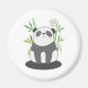 Um ímã com uma ilustração de um urso panda preto e branco sentado em algum bambu de aquarela verde. Uma pequena bolha de fala com um dentro do coração. Design bonito com um panda expressando seu amor.