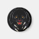 Um pano preto, posicionado centralmente na imagem, é representado em uma ilustração ousada e estilizada. O rosto e a parte superior do corpo da pantera são apresentados, com a boca aberta, revelando dentes afiados. Os olhos do animal são um amarelo impressionante, e suas garras se estendem, somando-se ao sentido de poder e agressão. O pelo da pantera é um preto profundo, contrastando fortemente com o fundo preto. Linhas fortes, definidas e sombreadas criam uma sensação de volume e textura, mostrando a forma muscular. A iluminação enfatiza as características da pantera, sem sombras visíveis, sugerindo um destaque ou estética gráfica do design. O estilo é ousado, gráfico e dinâmico, ideal para um logotipo ou poster. A composição e a perspectiva da imagem estão diretamente focadas na intensa expressão facial e na postura poderosa da pantera, criando uma impressão de ferocidade e força. Os detalhes importantes são as garras pronunciadas e a boca aberta.