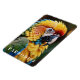 Este ímã é exibido com uma impressão de arte fotográfica de um belo papagaio tropical.