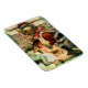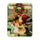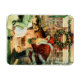Um charmoso ímã de natais vintages flexíveis com Papai Noel visitando calmamente duas crianças dormindo em frente a uma lareira.