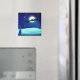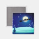 Este ímã tem uma imagem artística de Papais noeis voando pelo céu com sua rena.