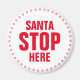 Papais noeis Param Aqui decorações de Natal com íman engraçado vermelho e branco, rodeadas por uma delicada coroa redonda de flocos de neve fofinhos