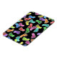 Ilustração colorida de emoticons de pés sorridentes felizes colocados em um fundo preto. Imagem disponível em vários presentes e produtos.