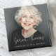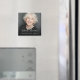 Imã de geladeira de funeral memorial com um nome personalizado e texto personalizável "para sempre em nossos corações" sobre uma foto personalizada.