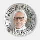 Imã de geladeira com foto e texto personalizado "para sempre em nossos corações" e nome em uma fonte elegante serif.
