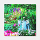 Uma bela pintura digital feita a partir de uma fotografia de um jardim de flores com flores de verão ao redor dos degraus de um guazebo branco.