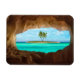 Esta foto mostra uma velha caverna indiana localizada em uma remota ilha de Caribe, olhando para o belo Caribe do mar brilhando e a luz do sol quente balançando algumas palmeiras de coco remotas em uma ilha deserta.