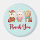 Um ímã com uma ilustração fofinha, com um coelho, um urso e um veado, todos vestidos com artes festivas. Adorável e caprichoso.