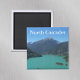 Magneta decorativa e quadrada que mostra uma imagem cênica do lindo e esmeraldo lago Diablo verde, localizado no Parque Nacional de North Cascades, Washington.