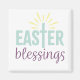 Adicione este ímã à sua geladeira ou a qualquer superfície magnética, ele foi projetado com a frase "Bênçãos de Páscoa" com uma cruz embutida na palavra Páscoa.