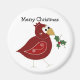 Íman Pássaro Vermelho Whimsical com Sprig de Holly