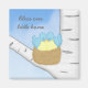 Dois pássaros doces azuis, com barrigas amarelas claras, se amontoam no ninho que se senta em uma árvore de pássaros. Um belo céu azul, e nuvens macios tornam a cena brilhante e alegre.