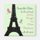 Sutis tons de rosa e verde, roteiro francês rico e uma bela silhueta da Torre Eiffel sotaque o romance do seu evento temático parisiense com esta Salvação da Data. Faz parte da linha de cheio Pássaros do Amor (verde) e também está disponível como cartão.