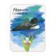 Um imã decorado com um luão comum e um de seus pintinhos cavalgando nas costas flutuando em um lago calmo com uma flor de escorregadio rosa e branca desenhada com tinta preta e pintada com aquarela. Inspirado pelo pássaro estadual e flor estadual de Minnesota. Você pode editar ou remover o texto para ajustado das suas necessidades.