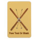 Pincéis cruzados de madeira e bastões de esqui num fundo de pele de fivela. Você pode escolher outra cor de fundo. Adicione seu próprio texto.