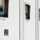 Pássaros negros tocando em frente ao seu novo desenvolvimento de condomínio marca. Pintura pastel original de Sheryl Karas.