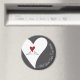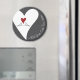 O design do produto apresenta dois pombos brancos empoleirados juntos e olhando para um coração. Os pombos brancos são símbolos de amor, sorte, paz e prosperidade. Esta ilustração simples de pássaros torna ímãs modernos e únicos com texto personalizado para o aniversário dela, Dia dos Namorados, casamento ou lembrancinhas de aniversário de casamento.