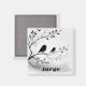 Traga um toque da natureza para a sua geladeira ou espaço de trabalho com os Monogramas Simple Black and White Birds no ímã quadrado Trees. Este na moda apresenta um design de sereno de pássaros agitados graciosamente em galhos em um clássico esquema de cores preto e branco. Personalize-o com o seu monograma ou nome para um toque pessoal que adicione caráter à sua decoração. Perfeito para segurar notas, fotos ou lembretes, este ímã combina funcionalidade com design elegante. Também faz um presente encantador para quem aprecia uma mistura de praticidade e encanto artístico.