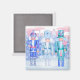 Três bolachas jubilantes, com presentes encantados da estação de inverno, não se enfartam em meio a uma floresta pastel beijada pela geada. Ilustração original do artista Noël Snow.