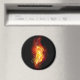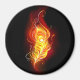 Pena de pavão brilhante feita de fogo e chamas sobre fundo negro.