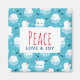 Um ímã com um lindo padrão de Natal com ursos polares em pé sobre gelo flutuante vestindo chapéus de anã vermelhos. Pequenos iglos, flocos de neve e peixes cercam esses adoráveis ursos polares se resfriando na água. Fundo azul claro. Design de férias bonitas e caprichosas. Um quadro retangular branco com dentro de escrita Peace Love & Joy.