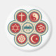 Seis símbolos das grandes religiões do mundo juntam-se num sinal de coexistência e paz. Budismo, cristianismo, hinduísmo, islamismo, judaísmo e taoismo. Símbolo de paz e texto de paz no centro. Promover a paz mundial!