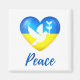 Mostre apoio às pessoas da Ucrânia com esta imã de geladeira com uma silhueta de pomba de paz numa bandeira em forma de coração da Ucrânia