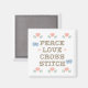 Mostre o seu amor por pontos cruzados com este design de padrões da Cruz de Paz, bonitinho, com corações cor-de-rosa e verde, borboletas azuis e texto marrom em t-shirts, camisetas, autocolantes, artigos de papelaria, canecas, sacos de tote e mais mercadorias crus.