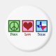 Imã do Texas Peace Love. Um belo presente texano com um sinal de paz, coração, e a bandeira do estado do Texas.