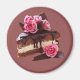 Sorte deliciosa de bolo de esponja de chocolate cheio de creme, gotejado em molho de chocolate e decorado com rosas de açúcar.