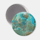Imã de geladeira redonda e decorativa que apresenta uma imagem das lindas e turquesas cores azuis da pedra mineral Chrysocolla. Selecione o tamanho do seu ímã. Por favor, note-se que não existe uma pedra real neste ponto.