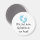 As pegadas de bebê azuis design com texto preto que diz "Pés pequenos deixam grandes marcas no nosso coração!" em camisetas, canecas, mousépias, sacos de tote, botões, chaveiros e muito mais!
