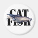 Quer você esteja rabiscando ou pescando com um gancho e um afundador, poucas coisas se comparam à captura de um peixe-gato poderoso e delicioso. Yum. Cor do cheio imagem detalhada de um peixe-gato com o texto de fundo CATFISH.