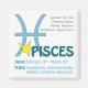 Este Peixes Traits Magnet faz um presente de aniversário perfeito para qualquer Peixes. Peixes é o décimo segundo sinal do zodiac e inclui todos os nasceres de 19 de fevereiro a 20 de março. Símbolo de peixes é o Peixe. Os traços de personalidade dos peixes são imaginativos, compaixão, altruístas, intuitivos e seguros. Peixes Birthstone é Aquamarine e Peixes Planeta Governante é Netuno
