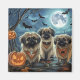 Libere o espírito assustador com esta design sombria do Dia das Bruxas apresentando um bando de cachorros sob um céu escuro e iluminado, cercado por morcegos voadores e abóboras brilhantes. Perfeito para aqueles que amam um toque de diversão terrível com seus amigos peludos!