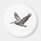Pelican voando sobre um fundo branco.