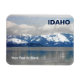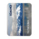 Olhando para o leste de Sandpoint, ID através do lago Pend Oreille (raio-d) em um dia de inverno; montanhas cobertas de neve na distância. O gelo formou-se na costa e se estende em parte através do lago. Blues e cinzentos são as cores predominantes. O texto personalizável lendo "IDAHO" também é exibido; e há um lugar adicional para adicionar mais texto.