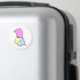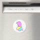 Um pinguim pastel de magia de desenho animado com um corpo azul-claro e branco, pés de lavanda, bico amarelo-claro e minúsculos olhos pretos, vestindo uma capa e capa de lavanda na moda com uma joia em forma de gota de chuva azul-claro na extremidade, carregando uma lavanda e varinha mágica amarela-clara.