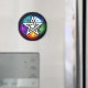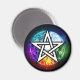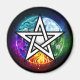 Pentagrama luminoso desenhado artificialmente com cinco elementos mágicos, água, terra, fogo, astral, ar sobre fundo negro. Pentagrama Wiccan. Wicca