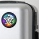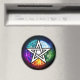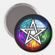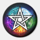 Pentagrama luminoso desenhado artificialmente com cinco elementos mágicos, água, terra, fogo, astral, ar sobre fundo negro. Pentagrama Wiccan. Wicca