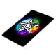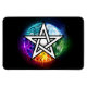 Pentagrama luminoso desenhado artificialmente com cinco elementos mágicos, água, terra, fogo, astral, ar sobre fundo negro. Pentagrama Wiccan. Wicca