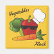 Um ímã de geladeira quadrada encorajando hábitos alimentares saudáveis com uma ilustração original de um pimenta vermelha em óculos de sol, cenoura e punho de brócolis com a legenda Vegetables Rock.